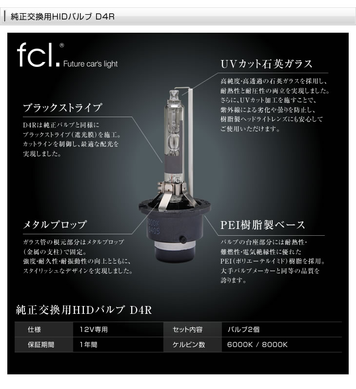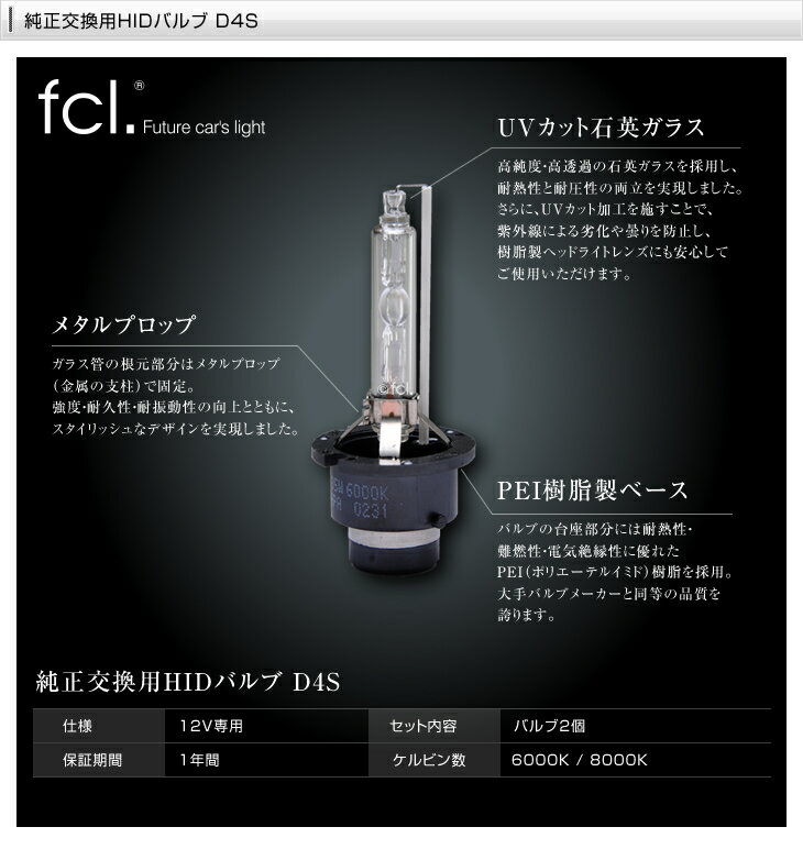 fcl 純正交換HIDバルブ D4S D4R 車検対応 1年保証 12V プロジェクター リフレクター 4300K 6000K 8000K | hid バルブ エフシーエル fcl ライト アルファード 20系 ヴェルファイア ヴェルファイヤ オデッセイ