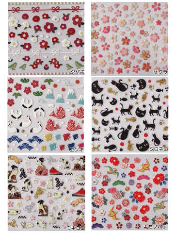 お好みで組み合わせて使えるぷくっと立体感がある和柄ポイントネイルシール。