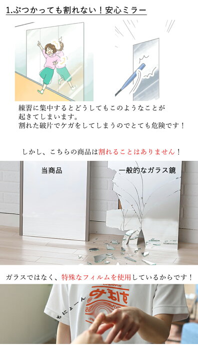 「ダンスをする時、鏡が割れないことが重要です!キャスター付きスポーツミラー 90×180 T型」リフェクスミラー フィルムミラー 安全 姿見 全身鏡 スタンドミラー 軽い 軽量 幅広 ワイド 大きい 大型 移動式 ヨガ トレーニング バレエ フィットネス 日本製 ジム