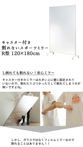「幅120cmの鏡はどんな動きも逃さない!大型キャスター付きミラー!R型」割れない鏡 リフェクスミラー フィルムミラー 姿見 全身鏡 大きい スタンドミラー 軽い 軽量 ワイド 幅広 移動式 ダンス ヨガ トレーニング バレエ フィットネス 運動 日本製 部室 ジム