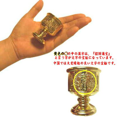 盃に刻み込まれている文字は「招財進寶」という、財運を呼び込む宝文字のメッセージ。