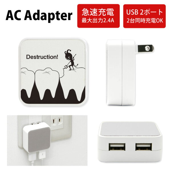 2つのUSBポートで2台同時充電OK!最大出力2.4A(2ポート合計)でスマホやタブレットをスピード充電可能! 名称 ぶっ壊す! USB2ポート ACアダプタ 対応機種 iPhone、AndroidスマートフォンやiPod、タブレット等 仕様 ・折り畳み式プラグ採用のコンパクト設計・出力合計2.4Aの2つのUSBポートを搭載。