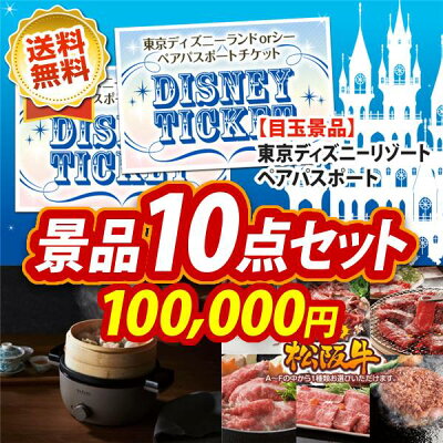 二次会景品10点セット【ディズニーチケット ペア1DAYパスポート、選べる一品景品【松阪牛】 他】送料無料!特大パネル・目録・特典付き!ビンゴや二次会景品にも!結婚式 景品 イベント 景品 会社 法人 景品