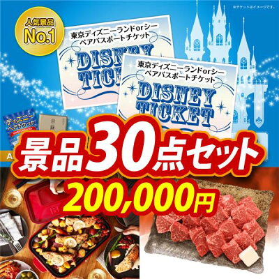 二次会景品30点セット【ディズニーチケット ペア1DAYパスポート、BRUNO グリルポット 他】送料無料!特大パネル・目録・特典付き!ビンゴや忘年会景品にも!