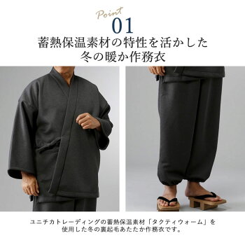 商品詳細蓄熱保温素材の特性を活かした冬を快適に過ごせる暖か作務衣。