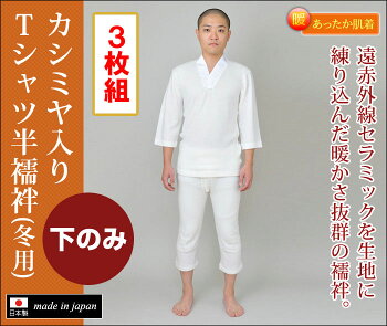 半襦袢 襦袢 肌着 下着 ズボン 作務衣用 和装用 寺用 メンズ 男性用 紳士 大きいサイズ 秋冬 秋冬用 日本製 洗える M L LLサイズ カシミア入り [カシミヤ入りTシャツ半襦袢 (冬用) (下のみ) (M-LL) お得な3枚組] 敬老の日 父の日 ギフト